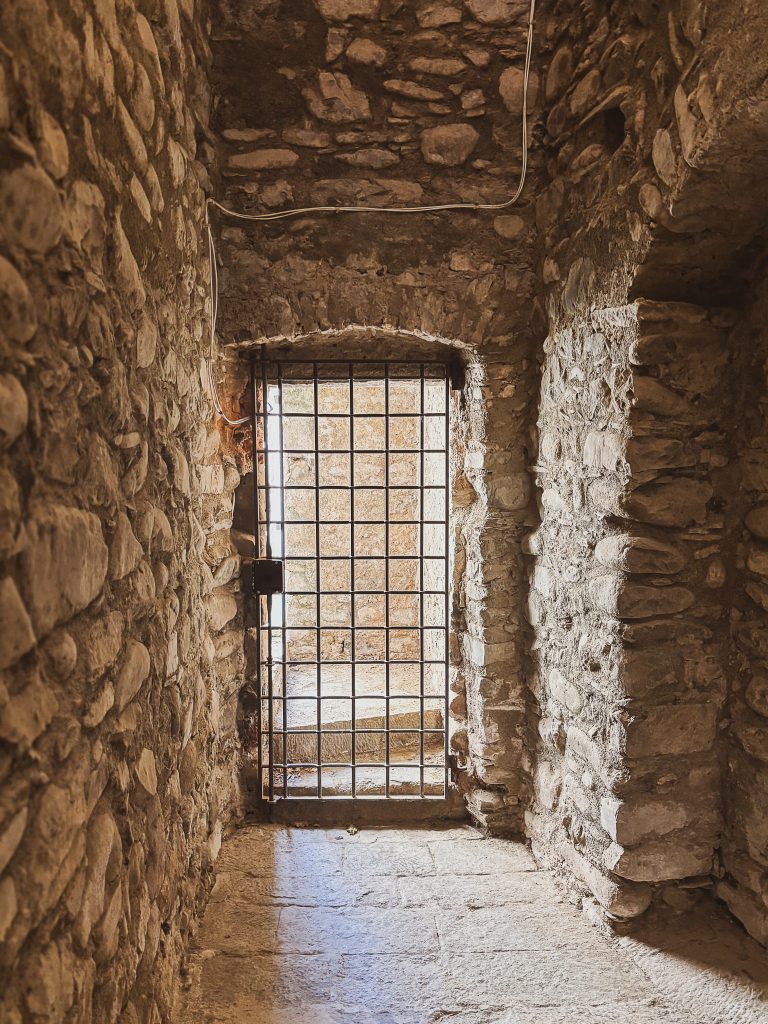 We explored every dusty corner. A stone jail cell with sunlight slashing through the bars. Heavy wooden tables that could’ve hosted monks, generals, or just very serious winemakers. It was dark, cool, and full of ghosts—or at least ghost energy.